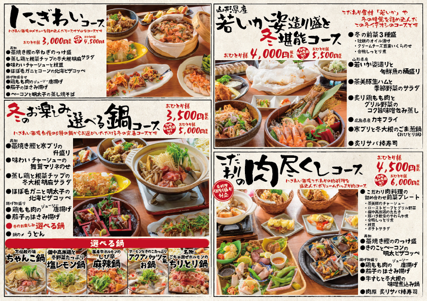 豊富にそろえた様々な居酒屋メニューは手作りにこだわり、ひとつひとつ丁寧に仕上げております
