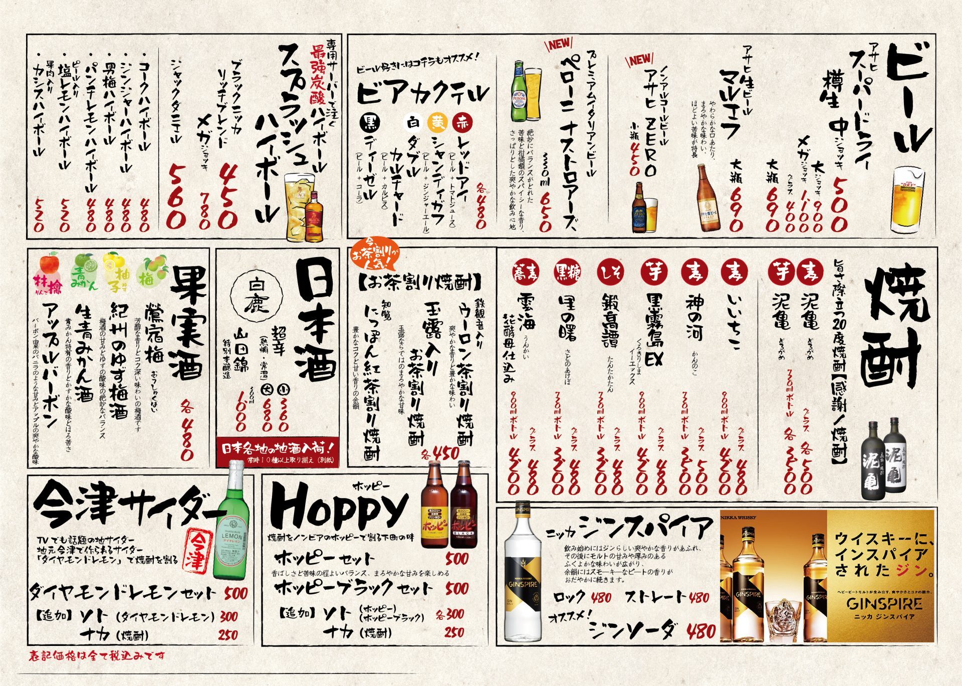 豊富にそろえた様々な居酒屋メニューは手作りにこだわり、ひとつひとつ丁寧に仕上げております